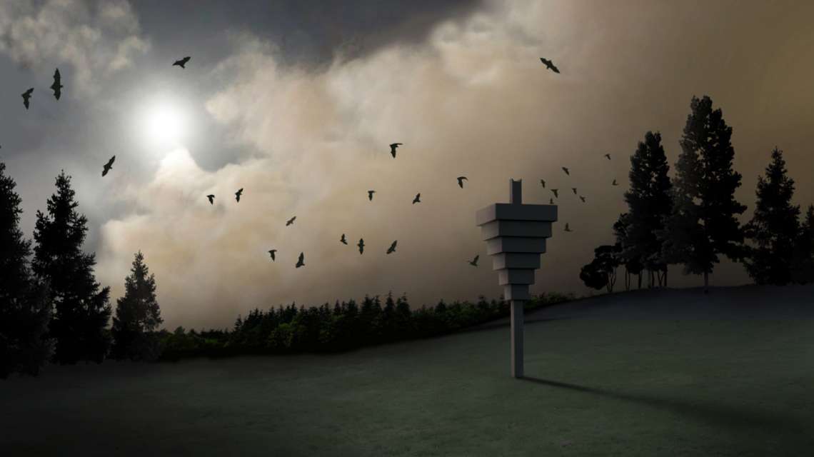 The project is located in Parc des Gayeulles, near lakes and forests. Instead of building a house for birds, JDSA decided to tackle the “unloved” species: the bat. In this particular area, the natural environments for bats to nest and shelter are limited, although they play an important role in the functioning of the ecosystem. The design of the bat house follows extensive research into the nesting needs of these mammals; they need a landing area from which they can climb, usually on rough wood. Once in place at height, they are able to migrate from one cell to another, depending on space and temperature.