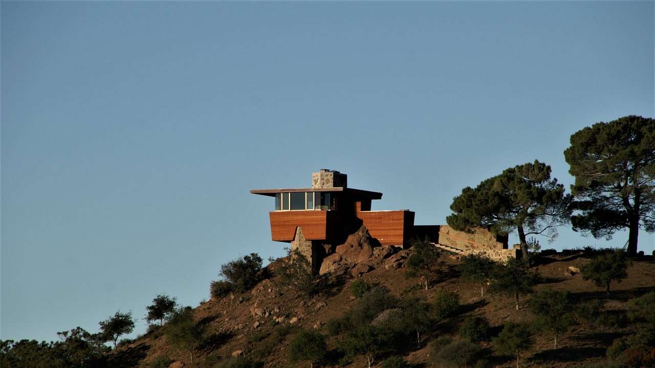 Before its untimely destruction, two Wright structures had sat on the land and were part of a planned, though never completed, estate Wright called Eaglefeather. The residence had been commissioned by Arch Oboler, a writer who worked across many mediums, and his wife, Eleanor. According to the Library of Congress, Arch became friends with Wright in the 1940s and even floated the idea of a filmed biography about the architect. After World War II, Wright designed an estate for the couple and their four children, though only two of the original structures were ever built: the gatehouse, which included a living room, workspace, bedroom, bathroom, and horse stalls; and a small cabin that was called Eleanor’s retreat. Other planned buildings included a film studio, stables, and paddock, according to the New York Post. The Obolers ultimately made the gatehouse their primary residence while making additional modifications that weren’t supervised by Wright.