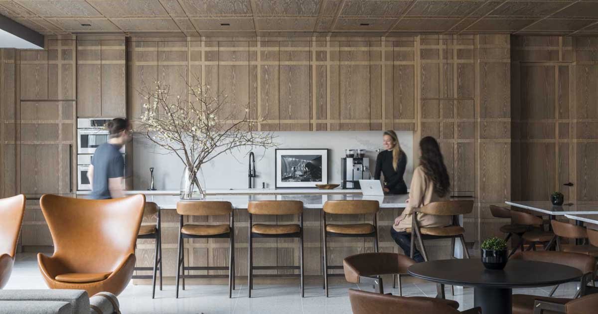 A Plaid-Inspired Wood Kitchen Is A Unique Design Feature Inside This Office