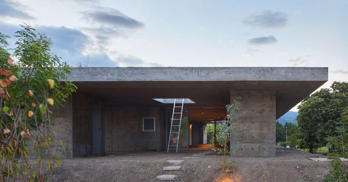 Airhouse has built this reinforced concrete house for a couple on a long site in Sekigahara town, Japan. The project features a minimum living space in the center of the site, surrounded by terraces to the north and south and topped by a large, habitable roof covered in grass. The south side of the residence features the main entrance and a terrace, which is in direct contact with the living room. Meanwhile, on the north side of the living space, the Japanese studio has created a passage and terrace that provide access to the buddhist altar room and guest rooms. The central living space is built as a semi-underground, open plan room that allows plenty of natural light to enter while blocking the line of sight from the outside to create a peaceful, relaxing atmosphere.