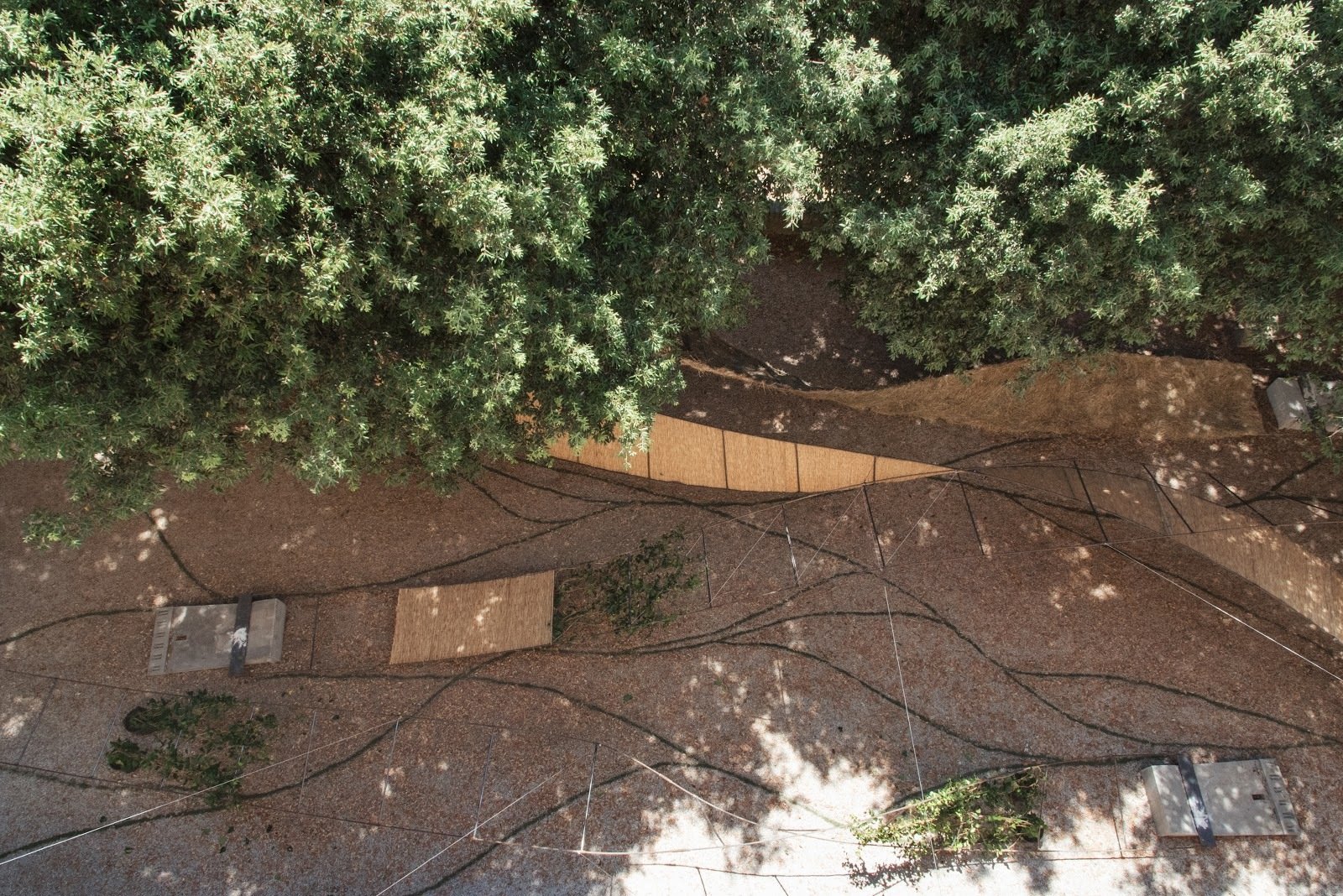 Haiek describes his process as ‘fast assemblage/slow architecture’, often beginning with meeting local laborers and fabricators with the aim of resulting in hybrid practices and processes of abstract thinking. The work was developed through 3 typologies: a land art intervention in the perimeters of the castle collaborating with local farmers, an immersive installation that hybridizes the artisan traditions of the Umbrian Povera culture with the technologies of the Umbertide automotive industry, and, a multidimensional exhibition through knowledge- and talent cartographies that celebrate the network of collaborative relationships weaved during the period of the residency.