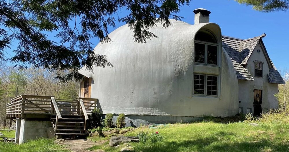 hybridizing the typical new england cottage with an earthen monolith, the house celebrates both a pastoral atmosphere with a future-forward turn toward more sustainable living. now, it has been listed for $690,000 along with its sprawling 43 acre property of tranquil new england woods and pastures.