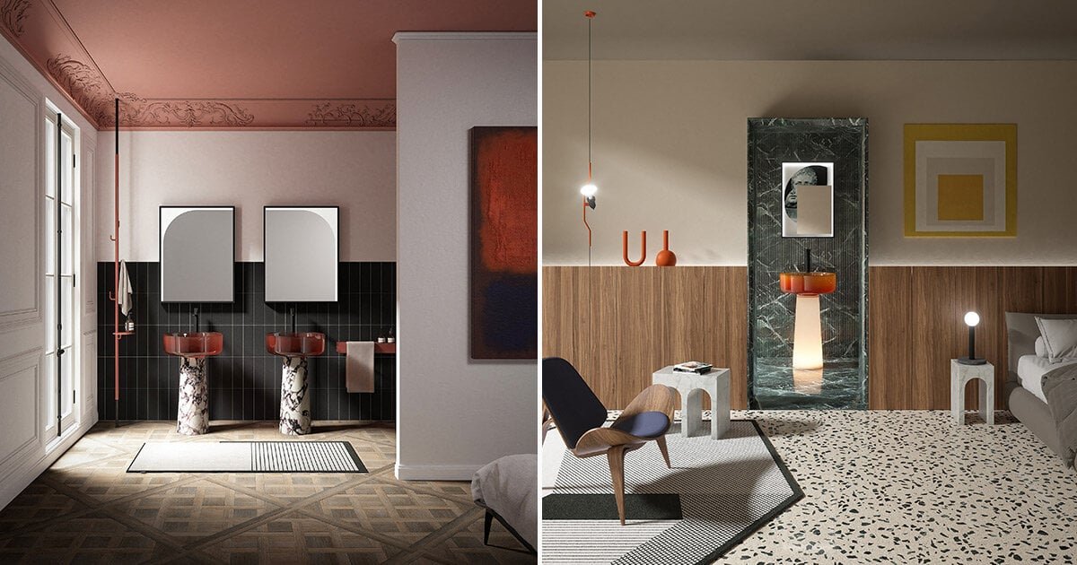 Freestanding washbasins are onto an evolution with contemporary shapes and raw materials. Born from the overlapping of different geometric shapes, Carlo Colombo’s Albume collection for antoniolupi sees an upgrade with models AlbumeLux and Albume12. The designs express the delicate balance between function and art as the monolithic columns expand combination possibilities for the bathroom with touches of antique marble, transparencies, light and color. The novelties are set to be revealed during Salone del Mobile 2023 as well as at the brand’s showroom in Milan.