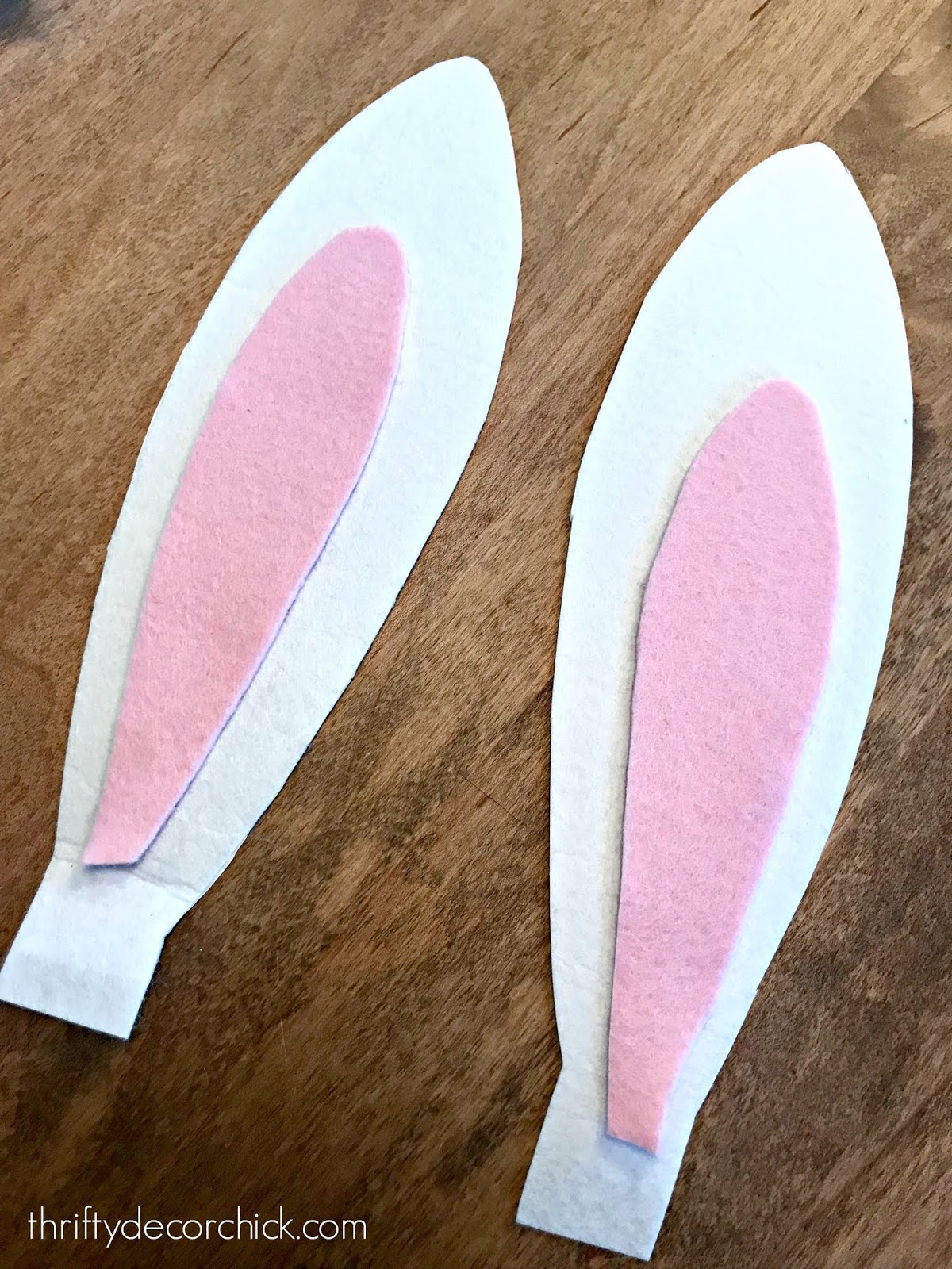 قمت بقصها ، ثم قطعت الجزء الأوسط (الوردي) من الأذن. لقد استخدمت لبادًا أكثر صلابة للجزء الأبيض أو الرئيسي من الأذنين حتى يكون لديهم بعض الهيكل:
