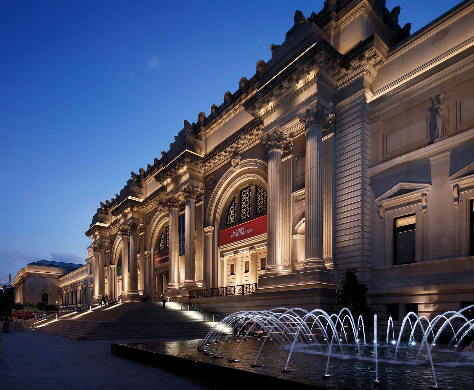 Stretching four blocks along Fifth Avenue, this 2015 redesign restores the grandeur of the Metropolitan Museum of Art’s 1902 Beaux-Arts façade with new fountains, trees, and visitor seating (the original building is by Richard Morris Hunt). Precision lighting transforms the landmark exterior into a sculptural presence at night, treating the architecture itself as artwork.