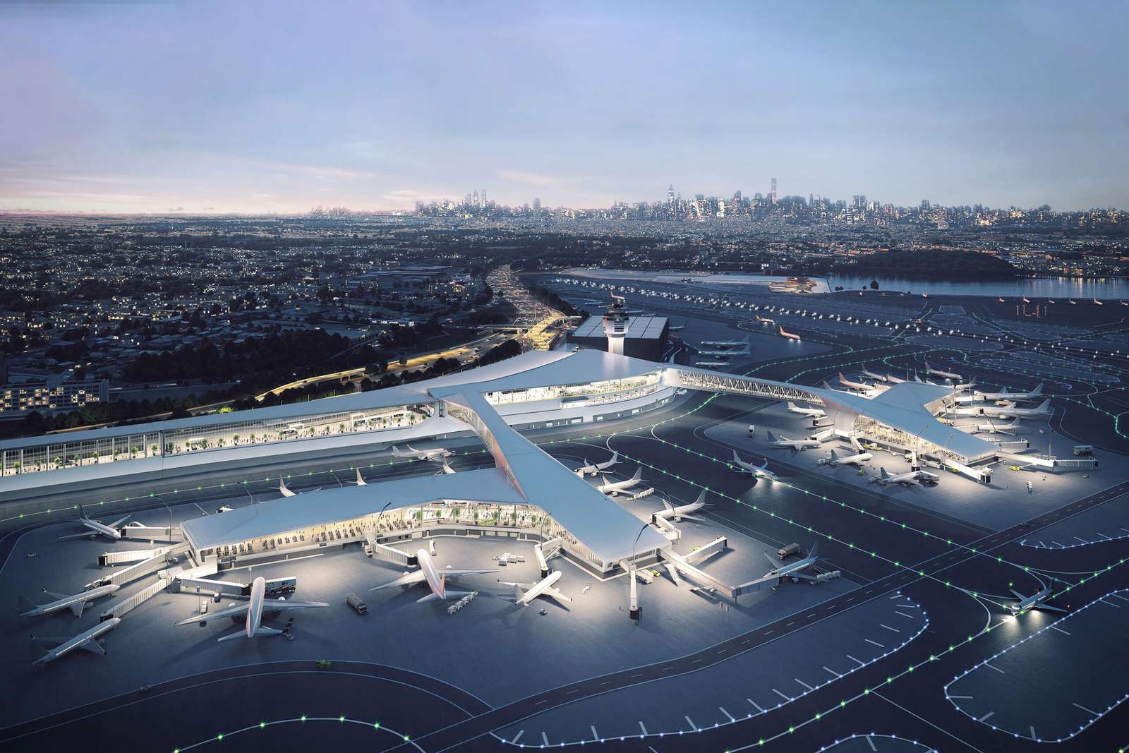 This complete reimagining of LaGuardia Airport introduces a transparent, light-filled terminal organized around two island concourses linked by monumental pedestrian bridges. Daylit circulation sequences elevate both arrivals and departures, transforming air travel into a civic-scaled experience.