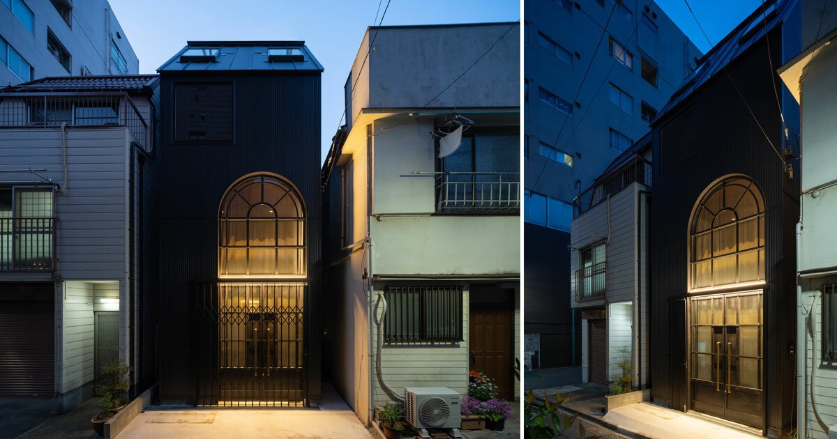 arte-1 architects designs a narrow house with a big glass door in tokyo