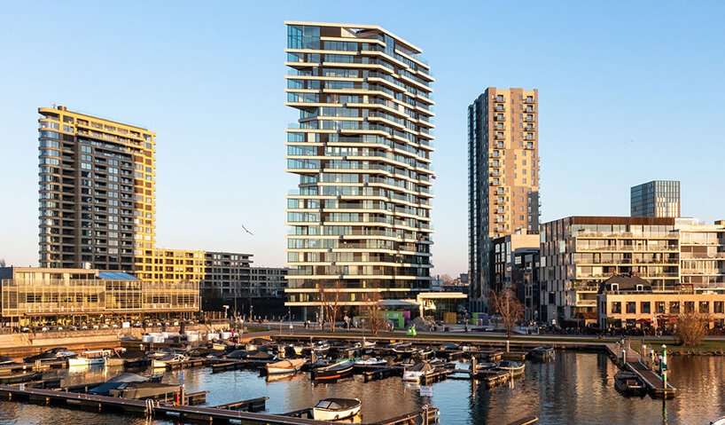 ‘HAUT’ takes shape as the Netherlands‘ tallest timber-hybrid residential building designed by British architecture firm Arup. Standing 21 floors tall, the project was conceived as part of the country’s commitment to becoming climate neutral by 2050. With its focus on reducing the building’s carbon footprint, the high-rise tower is a thoughtful example for future cities, combining innovative sustainability with high-quality architecture.