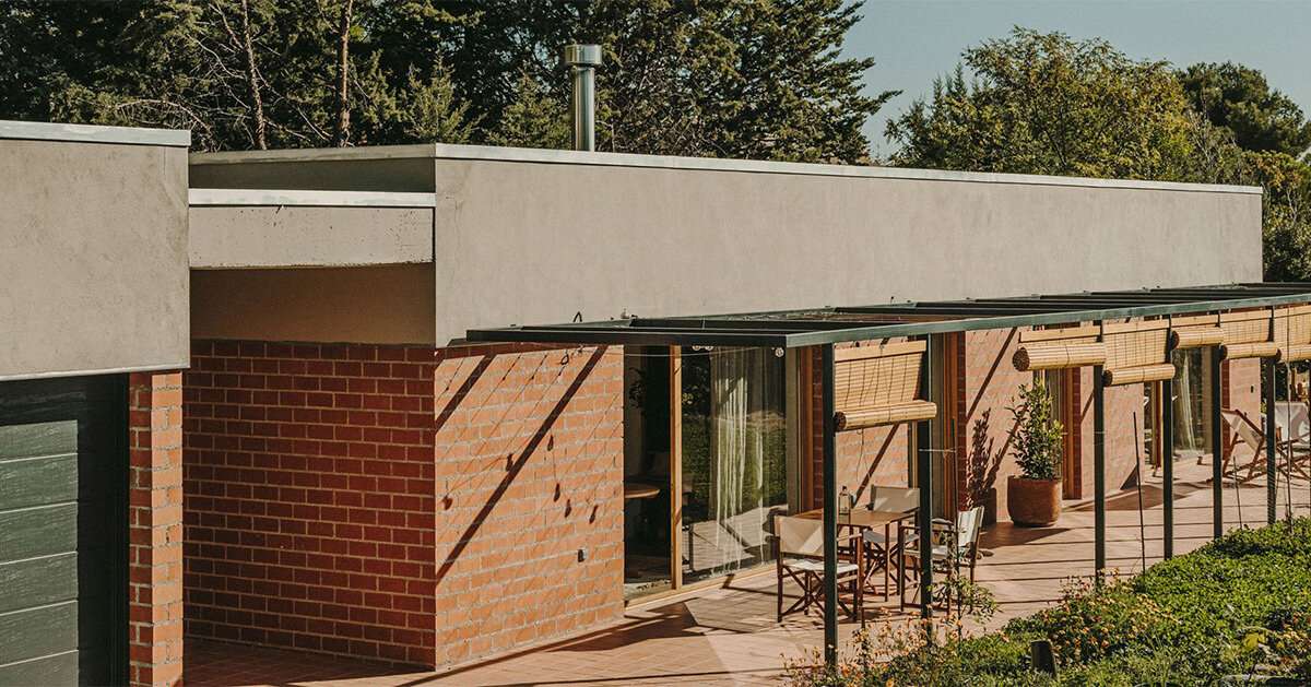 Since the plot enjoys ample sunlight, the need to control it during the different seasons emerged. For this reason, Slow Studio installed a pergola that covers the entire length of the south side and that will be protected with deciduous vegetation and simple wooden roller shutters. In the summer, the vegetation covers the upper part of the pergola. In addition, the roller shutters roll down, blocking the sun but ensuring sufficient natural ventilation complemented by an improved thermal sensation that is achieved thanks to the vegetation. In the winter, the trees lose their leaves and allow heat to permeate the residence.