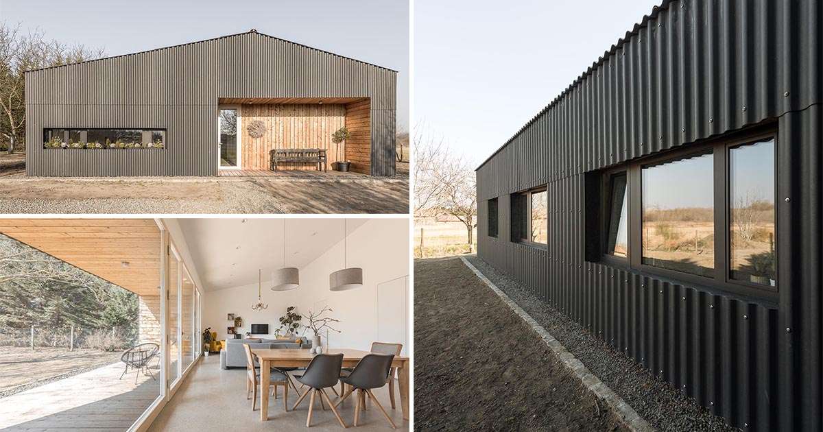 Architecture firm KONKRET Studio, has designed a modern home in Ullo, Hungary, that has a simple exterior of black corrugated fiber-cement siding.