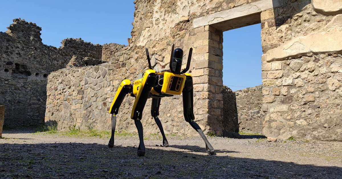 boston dynamics’ dog robot SPOT sniffs out to guard the ruins of pompeii