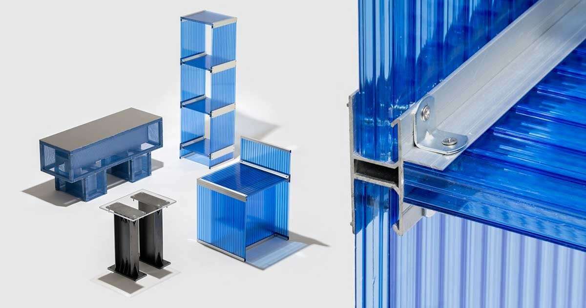 the final collection comprises four pieces: the beam stool, the scaffolding bench, the polycarbonate chair and the polycarbonate shelf. the stool utilizes the basic structure of a building in which two steel I beams support the weight of one person. the bench stool is made of steel beams with scaffolding, made of pipes and safety nets, wrapped around. finally, the chair and shelf are composed of double-layered polycarbonate plates with aluminum finishing on the joints connected by simple screws.