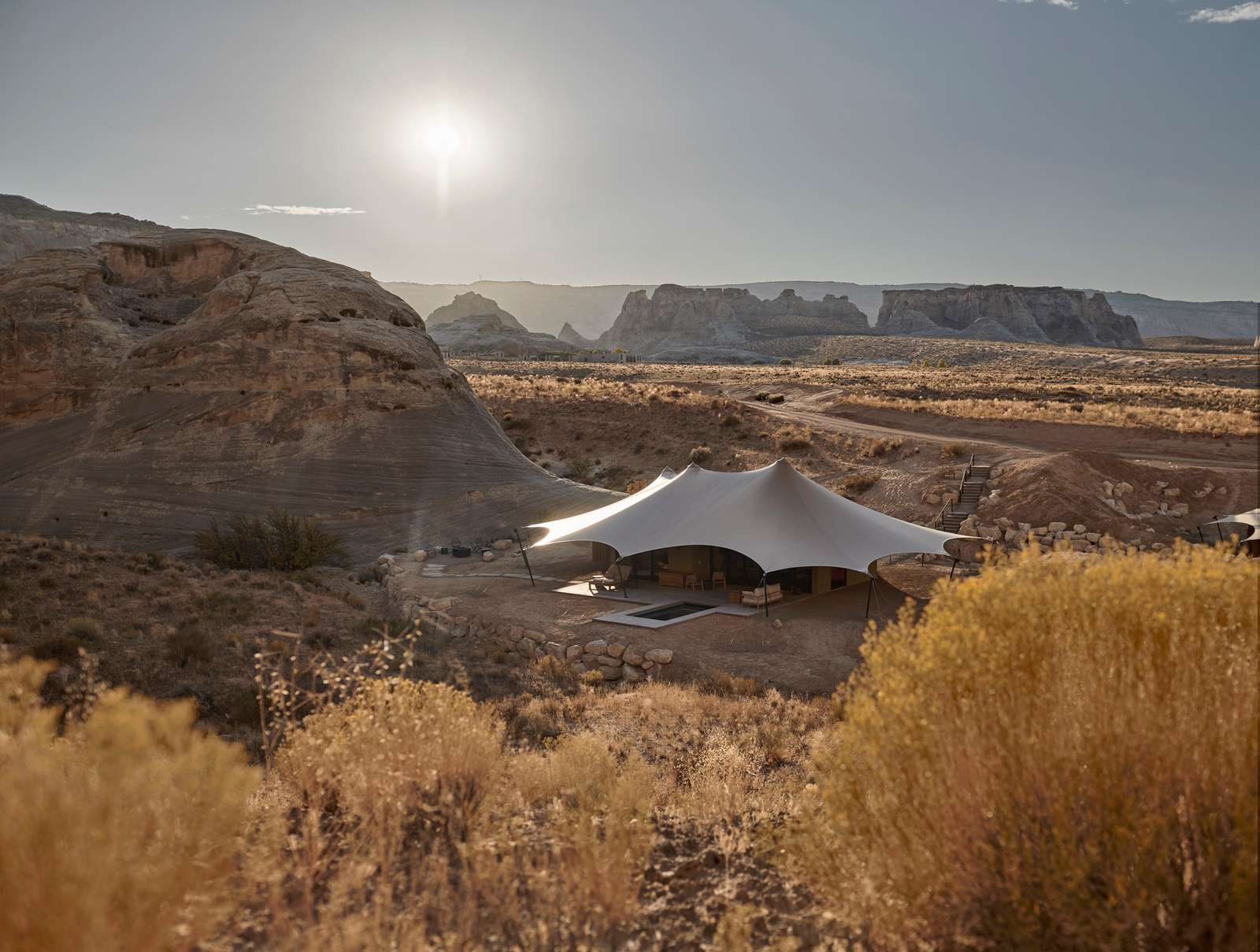 Thoughtfully positioned for unobstructed views of eastern mesas or glorious western sunsets, the iconic tents allow for an unforgettable experience with nature. Evenly divided between one- and two-bedrooms, the 10 units are each equipped with a living area, dining area, wet and dry bar, as well as private bathrooms with a bathtub, indoor and outdoor showers.