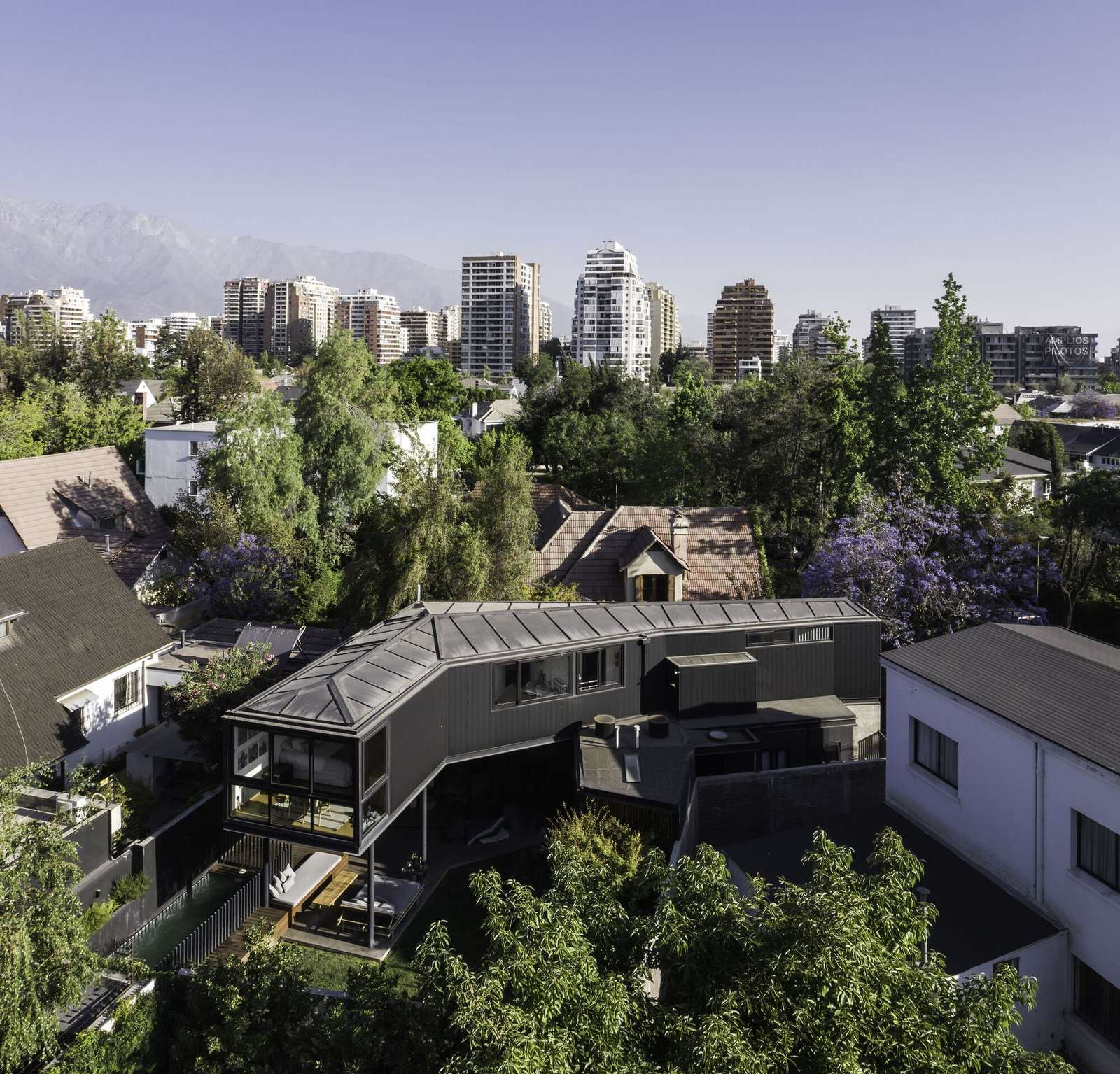 Text description provided by the architects. The development of the project for this single-family home in the Golf de Las Condes neighborhood was a great challenge due to the difficult shape of the lot, with a front of just over 5 meters and an irregular L-shaped geometry that widened towards the rear. The location of the house had to be arranged making the most of the spaces, meeting the need for parking and trying to leave a more private garden area, separated from the access.