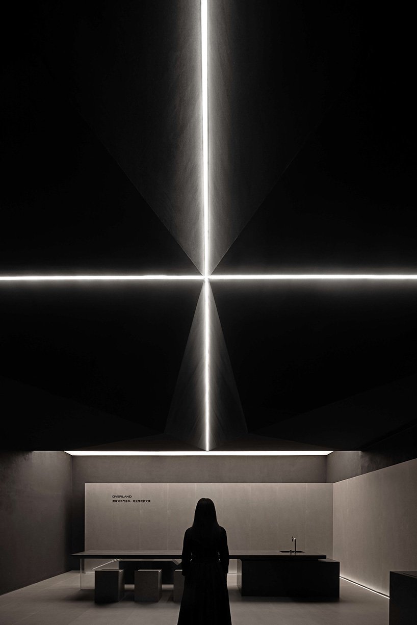 Chasing Light · Overland Headquarters & Showroom (low-res) https://www.dropbox.com/sh/q2vkw0dv0jtob63/AAALoVIPD0tzbPsDmneeaL_wa?dl=0 Project name: Chasing Light · Overland Headquarters & Showroom Design firm: AD ARCHITECTURE (http://www.arch-ad.com/) Chief designer: Xie Peihe Furnishings: AD ARCHITECTURE Location: Foshan, Guangdong Floor area: 890 square meters Main materials: sintered stone panel, paint, stainless steel, acrylic Start time: August 2021 Completion time: November 2021 Photography: Ouyang Yun Video: https://youtu.be/kn55qJWdEWo “Architecture is the masterly, correct and magnificent play of masses brought together in light. Our eyes are made to see forms in light; light and shade reveal these forms; cubes, cones, spheres, cylinders or pyramids are the great primary forms which light reveals to advantage; the image of these is distinct and tangible within us and without ambiguity. It is for that reason that these are beautiful forms, the most beautiful forms.” — Towards a New Architecture (1923) 01/ Light & geometry Light and shadows help create geometric forms in the space. Architecture is a relationship, bringing a pure spiritual experience and creating an abstract, tranquil, pure and geometric space. The interior space is awash with natural daylight and artificial lighting, allowing people to feel the spatial power and resonate with its spirit. Project background The project is located in Foshan, China. As a part of ceramic tile brand Overland’s headquarters, it integrates the functions of reception, exhibition and experience, and aims to upgrade the brand’s image. Subtle subjective feeling is turned into technical parameters. The boundary between products and people is explored with a critical eye. Brand positioning Overland innovatively turns people’s subtle subjective feeling about ceramic tile products into technical parameters, and combines a plain aesthetic with modern manufacturing technology. Based on natural texture, modern elements and artificial grain, the brand designs and develops ceramic tile products through tactile, visual and functional innovations. Its ceramic tile products are mainly dominated by grey hue, featuring a classy yet plain touch. The product grains embody the fusion of naturalness and modern, humanistic aesthetics, and highlight the mix of natural and fashionable elements. The brand’s product portfolio mainly includes large-sized sintered stone panels. Overland targets at consumer groups with a unique taste, and advocates a modern, comfortable, simple and pure style. Through the combination of architecture, space, geometry and light, the design creates a textured scene to unfold narratives about products, and interprets a guiding art and aesthetic system. Brand exploration Based on the core values of the ceramic tile brand that represents the creative power of China and has a history of 23 years, the project adopts a design logic that meets the demands of contemporary and future exploration, and shows respect to the brand’s culture and core. The design team dug into the brand’s philosophy that respects nature and values a plain aesthetic. Through architectural space and light, the designers expressed their understanding of ceramic tile products with a confident attitude. The overall design well harmonizes with nature. 02/ Innovative logic The design is an experimental thinking on how to present a future showroom, how to leverage an innovative logic to break the homogeneous image of conventional showrooms in China’s ceramic tiles sector. Conventional showrooms face two common problems. First, the traditional spatial pattern restricts products to express themselves. Second, the classification of products is trapped in the conventional thinking of selling goods, thus easily causing disorder in the space, making displayed products less expressive and directly lowering customers’ purchasing desire. Design exploration Starting from the thinking of commercial value, AD ARCHITECTURE is creating a “positive case” for the industry. An exploration with both grasp and risk The design breaks the homogeneous design of conventional showrooms and ways of product display, hence enabling products to resonate with the space, nature, people and time. For this project, AD ARCHITECTURE conducted a bold exploration of showroom design in China’s ceramic tiles sector. The free interior surfaces make room for diversified material textures, to show the inherent character of products. By releasing the column network of the space, the project creates a free, relaxing spatial atmosphere and a well-organized circulation route, allowing visitors to feel all products and participate in every spatial node by following the set circulation. Rich layers and multi-faceted design techniques create a breathing space for highlighting product textures. 03/ Stimulate dialogue between products and events in the space For this project, the design team reflected on how to break restrictions and create more possibilities through design approaches, and tried to explore diverse uses of materials. There are 38 types of sintered stone panels, which can be used in 54 different ways in various spaces. To efficiently display the diversified uses of such a variety of products was the client’s request, and was also a challenge as the large quantity of displayed products was likely to cause disorder in the space. To solve this, the design team matched and combined products through rigorous calculation, thus unifying the overall space. Displayed sintered stone panels are presented in the space in combination with other materials such as metal and glass, and are applied to cabinet, furniture and bar counter, etc., with a view to highlighting the value of those products and establishing a dialogue between products and the space. The design team believed that such design could help effectively showcase the application of the brand’s products. Spatial narratives The ce