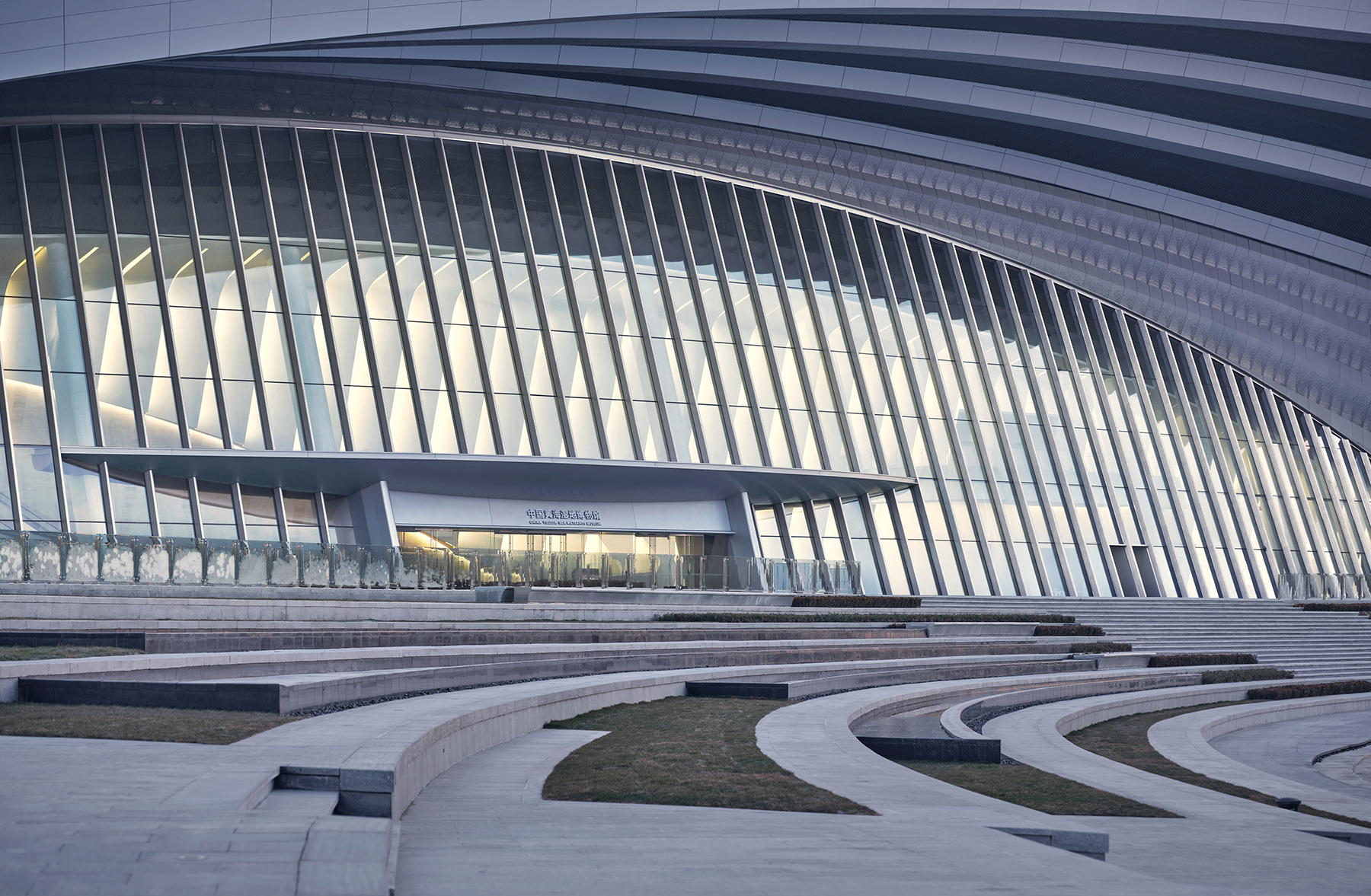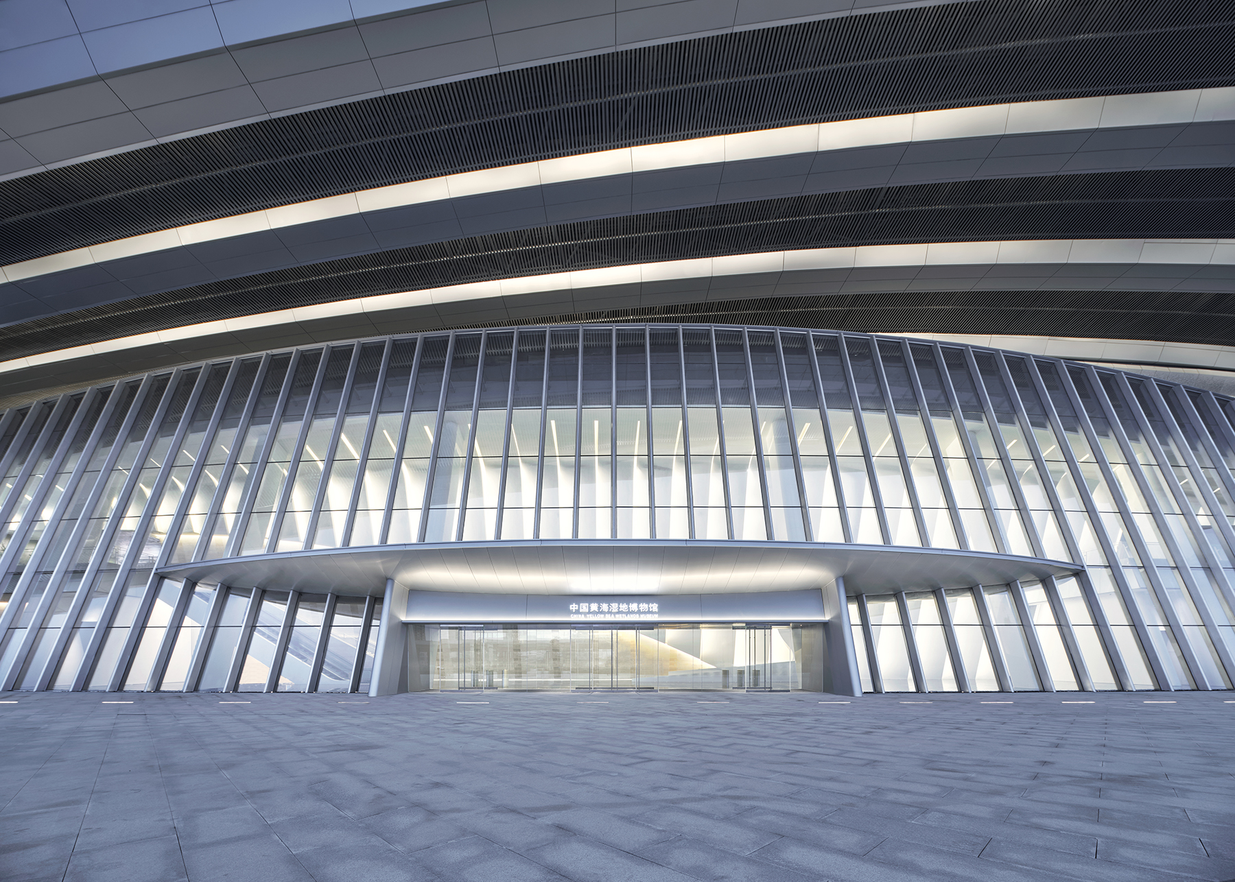 The silver-white linear elements also echo the intention of the feathers of the red-crowned crane, the protected animal of Yancheng Wetland.