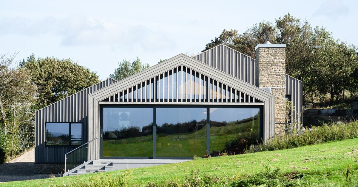 cluster of pitched timber volumes by coffey architects perch above dorset’s sloping hillside