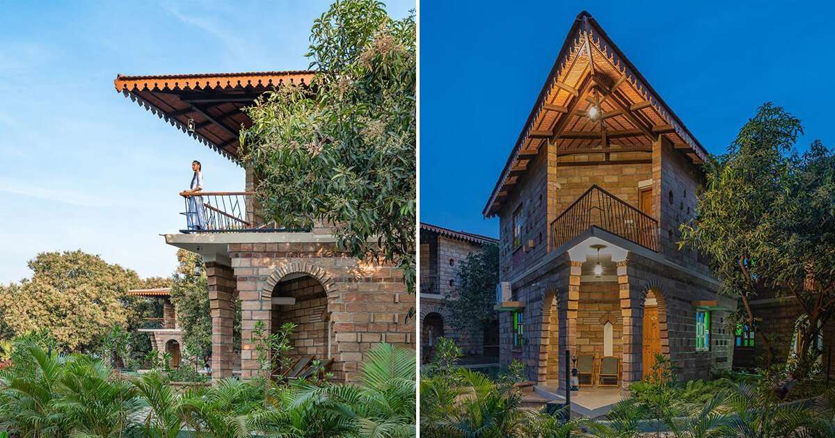 d6thd design studio grows triangular cottages in a mango tree farm, in india