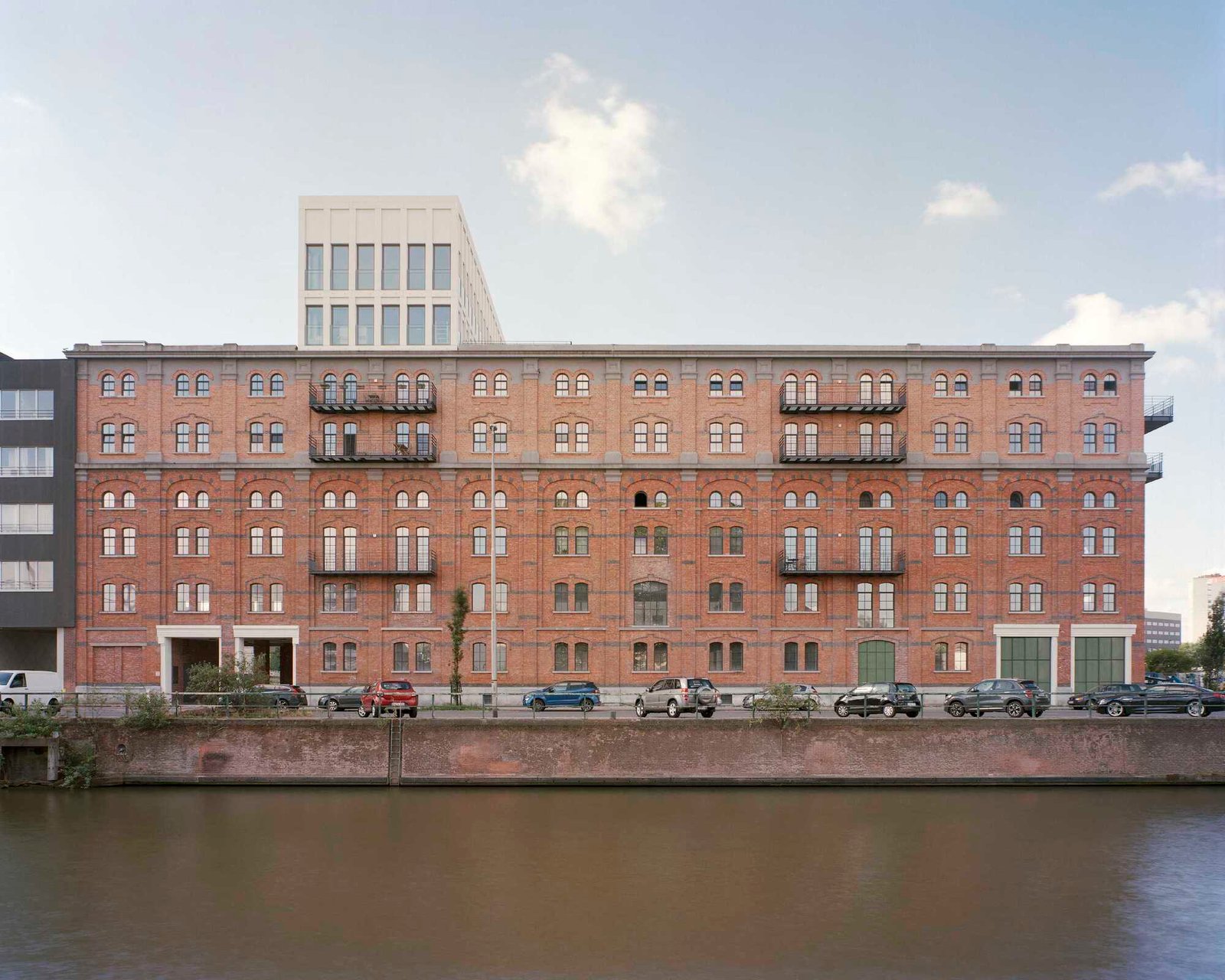The Molengebouw on the south side with its large facade openings was redeveloped as a loft building and the closed silo building was provided with facade openings to enable living as a new destination. The new building was developed as a concrete structure with generous outdoor spaces on the southwest side.
