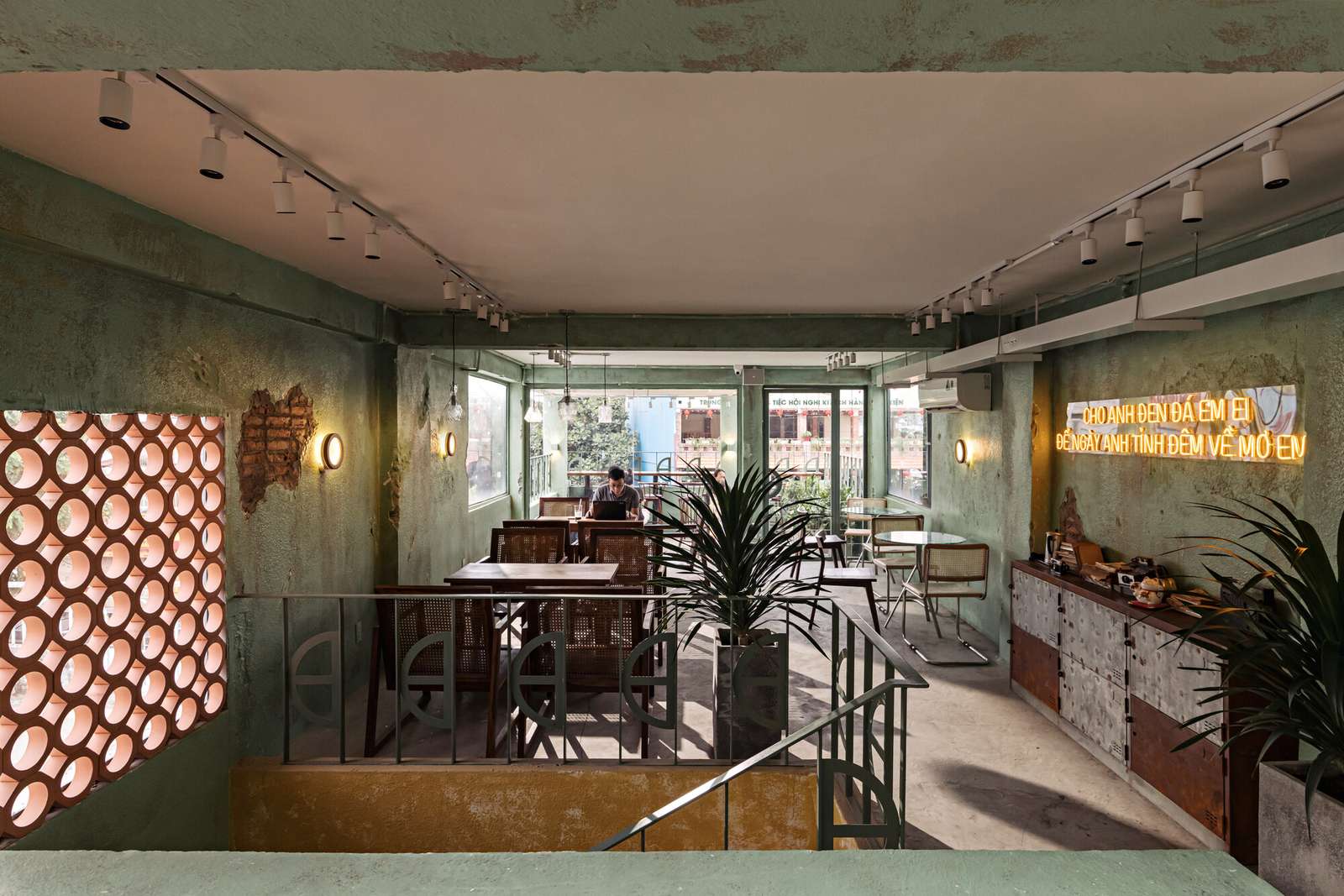 Text description provided by the architects. When talking about Den Da coffee, most of the customers will immediately remember the highlights of the atmosphere from both old and modern Saigon. That is the reason why Ksoul continues to get inspiration from distinctive colors and details of Saigon to bring back the integrity of the chain, and also bring the customers a new atmosphere of the newest Den Da coffee store – Den Da Quang Trung.