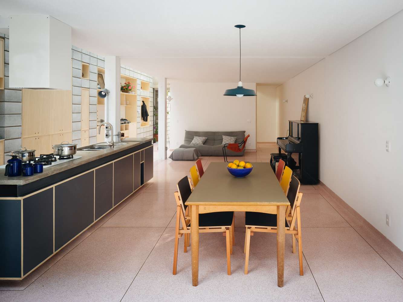 Looking at projects published in ArchDaily over the past year, we see that contemporary homes commonly opt for the functionality of having the dining table as close as possible to the area where food is prepared. Varying in dimensions, materials and number of seats, we can categorize them by how they are organized in relation to the organization of the layout.