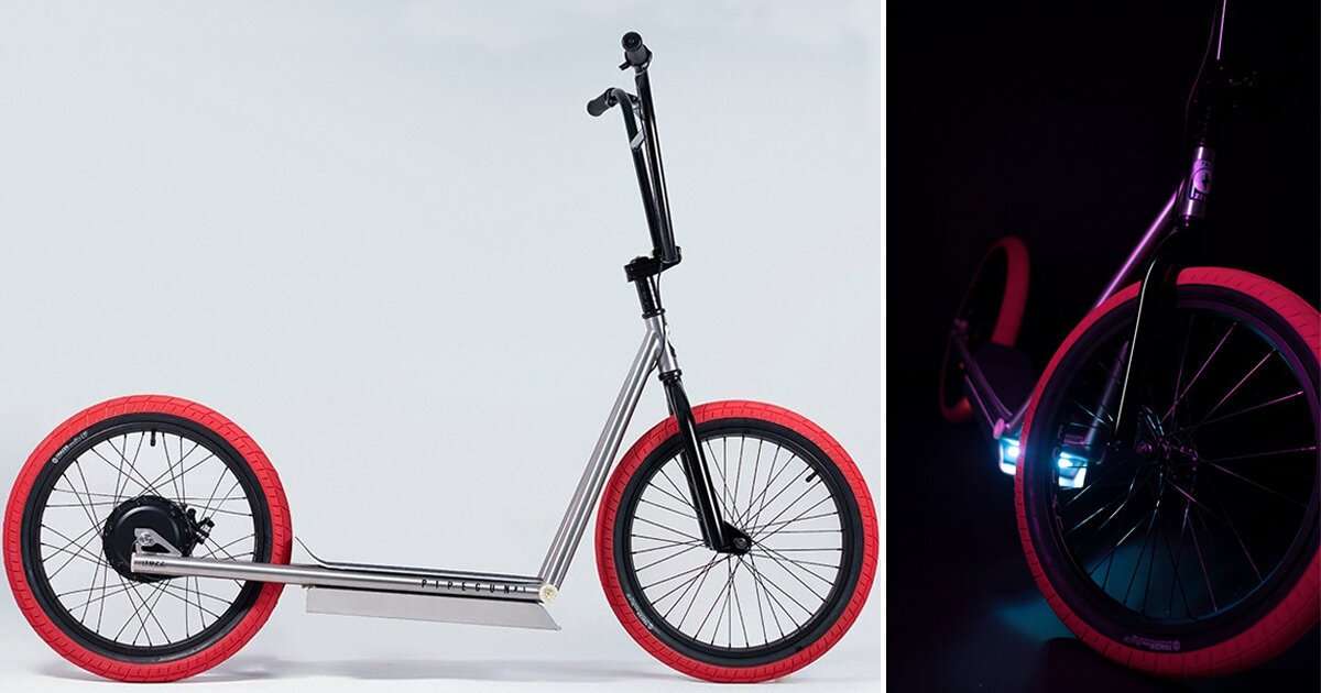 founded in 2021 by emre kuvvetli and burak kazar, TOZZ’s aim to create an urban, electric kickbike takes shape with the dynamic pipegun #1, or PG1. the bike definitely stands out for its raw looking stainless steel body, signature ‘wishbone’ design, red salt tracer BMX tires and its four square LED front lights.