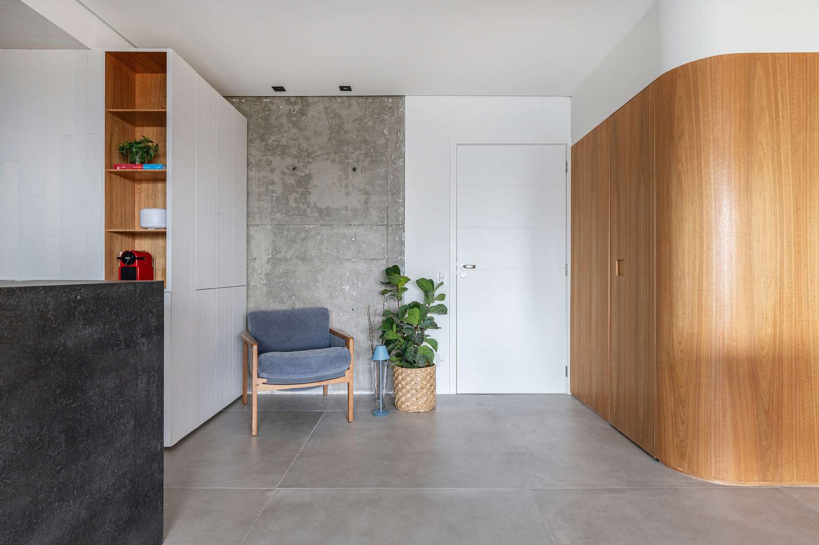 In an even more complex project, it is possible to imagine large furniture, such as a bookcase, or a larger-scale bench, which blends in with the entire space and creates a smooth transition between the entrance area and other residential ambiences.