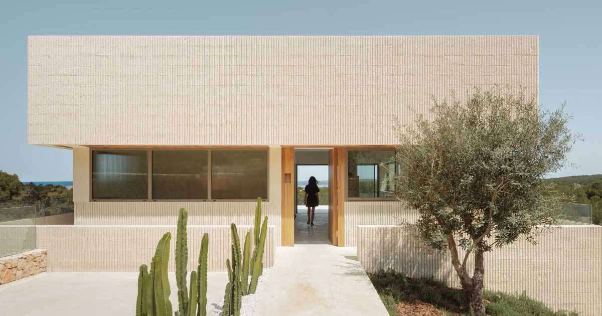 NOMO STUDIO has shared photos of a modern home they’ve designed in Menorca, Spain, that features a textured facade of fluted concrete walls.