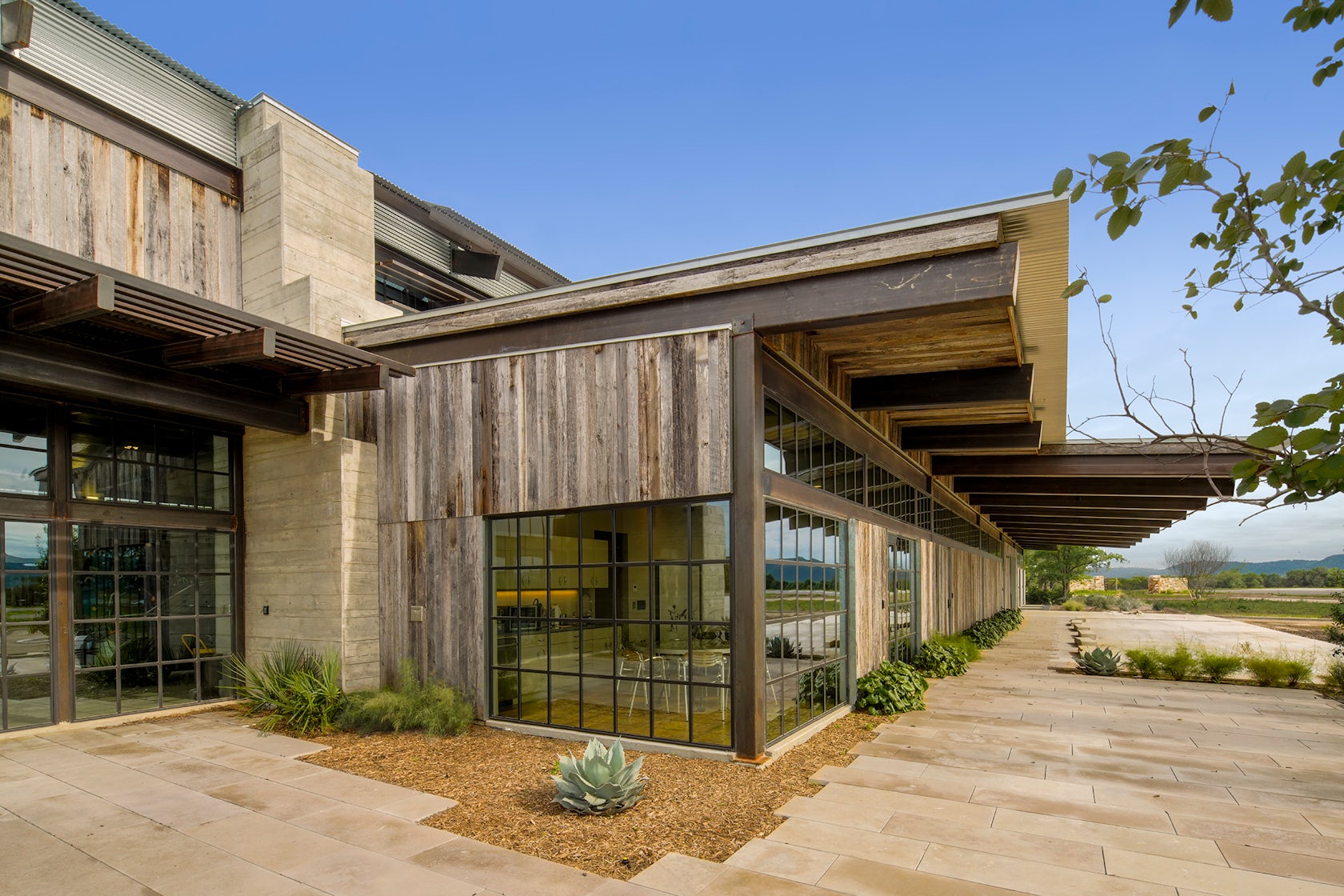 Selecting reclaimed materials that were pre-weathered and ready to handle the climate, and new materials that carry inherit durability were a priority. Allowing for ample natural light, upcycled HVAC, and natural and mechanical ventilation round out this building’s response to Texas’ harsh climate.