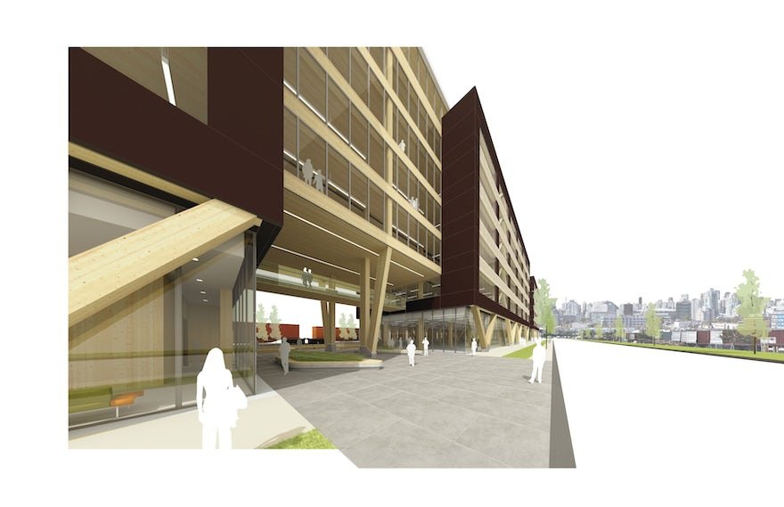 Located in the evolving False Creek Flats district of Vancouver, Industrial Long Wood is an exposed mass timber building that measures 27 metres high by 21 metres wide and 162 metres long, equivalent to a 54-storey tower laid on its side. Industrial Long Wood supports a City of Vancouver planning vision for False Creek Flats, a newly established light industrial area located close to downtown and the Port of Vancouver.False Creek Flats was once a muddy tidal flat.