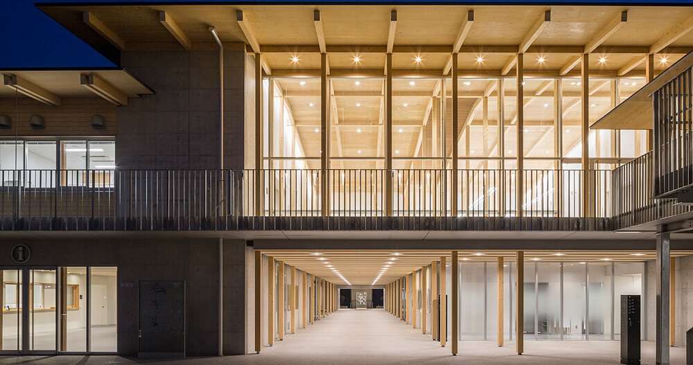 the space is organized around a large central void that invites students and visitors to pass through, serving to further connect the architecture with the surrounding nature.