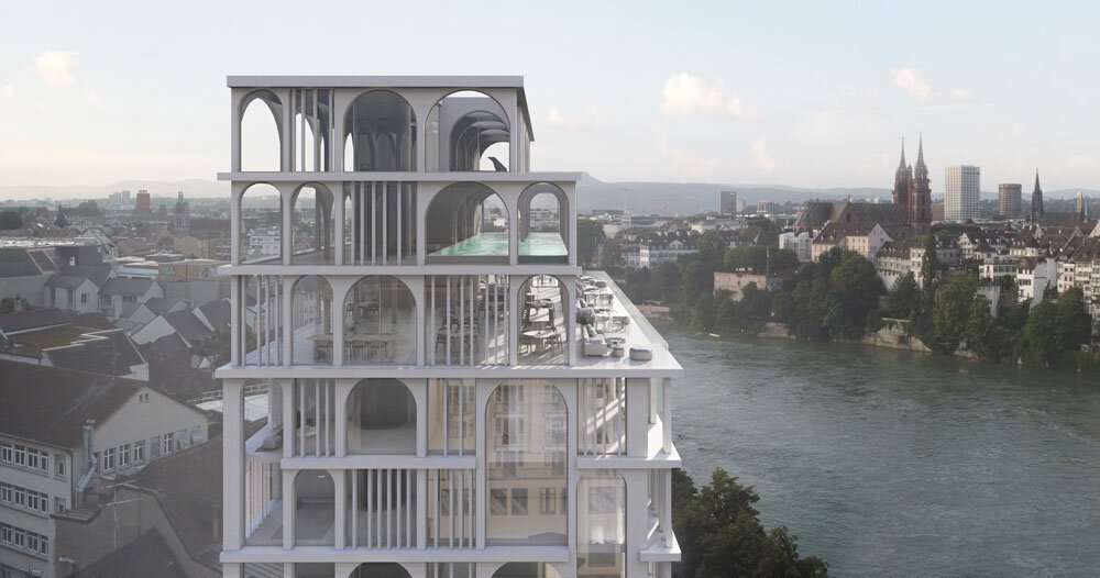 kohlerstraumann envisions its ‘merian’ tower in basel as a stack of contemporary arcades