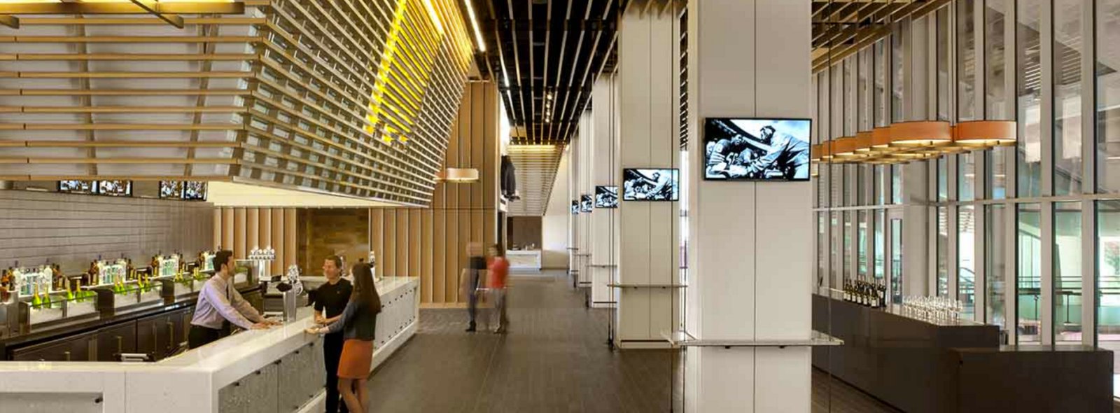 4. The architecture showcases transparency, openness, and flexibility with expansive glass façades and open concourses, offering panoramic views of nearby hills and the city. Beyond the arena bowl, indoor-outdoor lounges and terraces extend the social experience, encouraging movement and interaction. The idea behind the design was to make the stadium feel less like an enclosed arena and more like an open, flexible, and bright public space. The design’s clean lines and light materials evoke the clarity and precision of Silicon Valley’s tech campuses.
