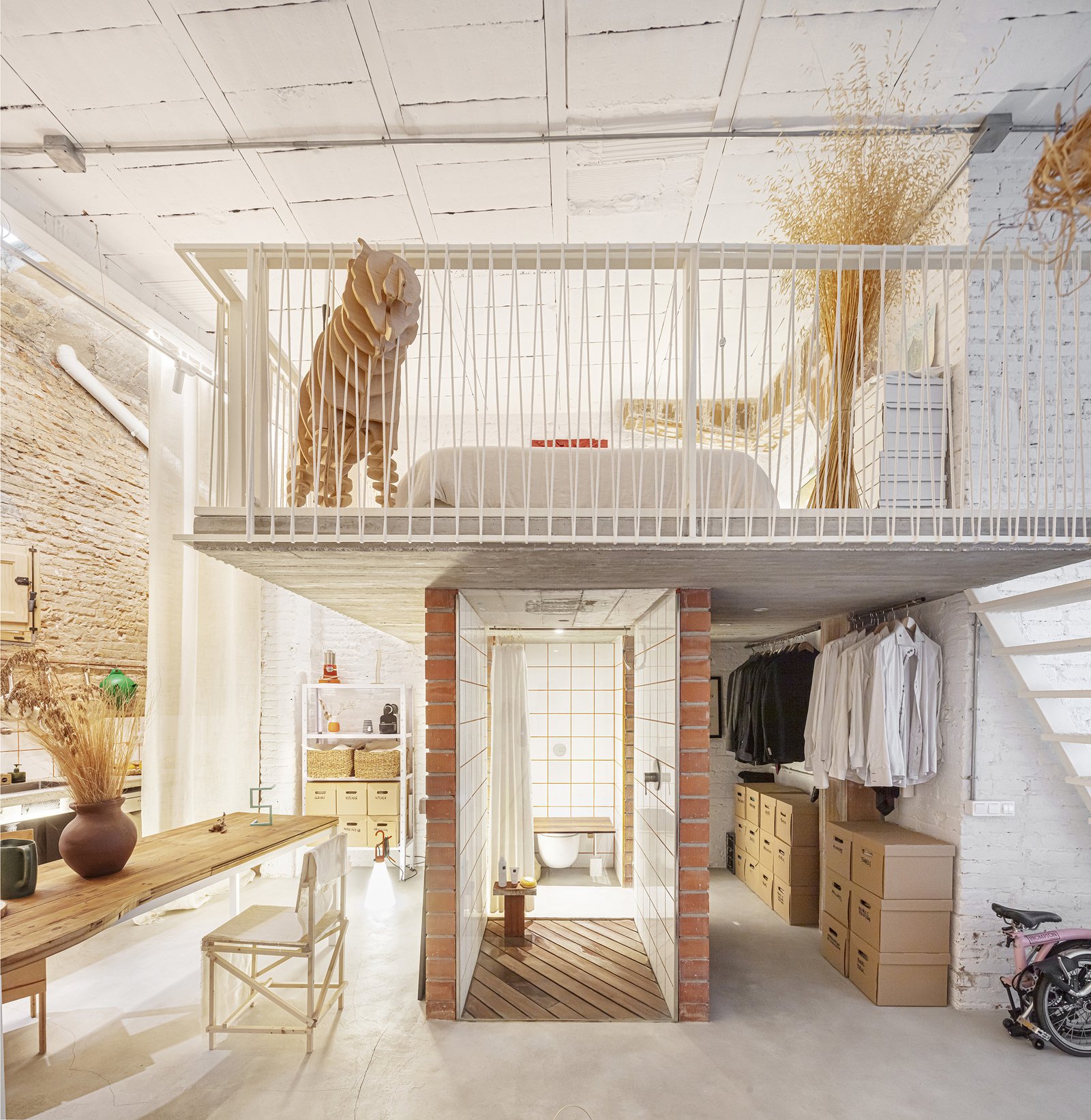 Text description provided by the architects. The reconversion of an old parking space into a loft is a project whose goal was to achieve an extremely intimate space, a shell of kindness love, and protection, frozen in time, to hide, relax and enjoy, far from ordinary life.