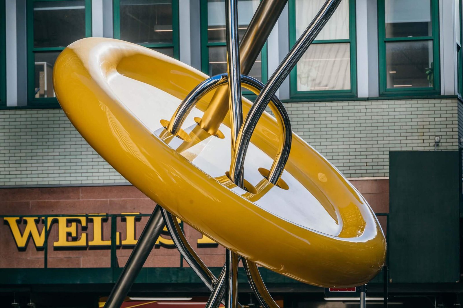 In 2017, GDA hired the experiential designers at Local Projects to come up with a new hub in consultation with industry professionals, building owners, and the City of New York. The stakeholders concluded that a new kiosk was unnecessary, but the Big Button needed to stay. The information booth was taken down to make way for Big Button 2.0. The team thought it could reuse the existing sculpture, but it wasn’t in great shape, so they crafted one in new materials and replaced its black hue with a shade of bright yellow, that draws from the graphics of the nearby NQRW subway lines.