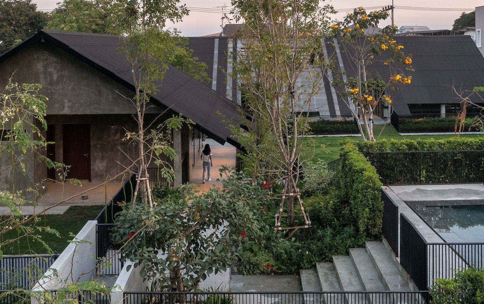 Designed to nurture the relationship between dogs and humans, this house in Thailand adapts both its scale and function for its four-legged residents. A low, agricultural-style roof signals zones for walking, sitting and resting, while wide column bases are shaped to fit sleeping dogs. The house includes a dog hotel and salon, allowing other dogs to share the facilities and creating a social space for both pets and owners.