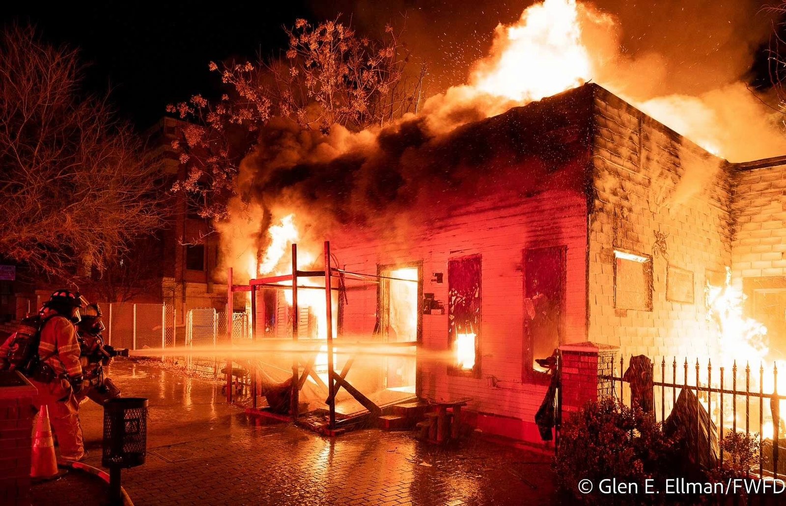 Just after 1:15am, the #FWFD responded to a reported structure fire in the 1100 block of Evans Ave. in the southside area of #fortworth. Upon arrival, crews saw a 1-story wood frame residential structure fully involved in flames. [1/4] pic.twitter.com/OoSuMKTUa9