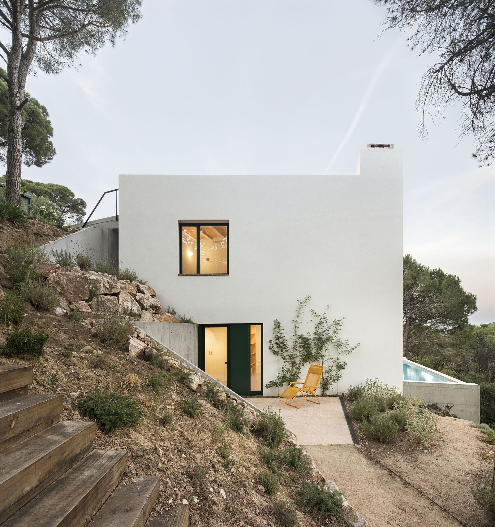 Text description provided by the architects. This family house is located at the edge of a suburb in the Baix Emporda, Catalonia, on a steep hill overlooking a forested valley.