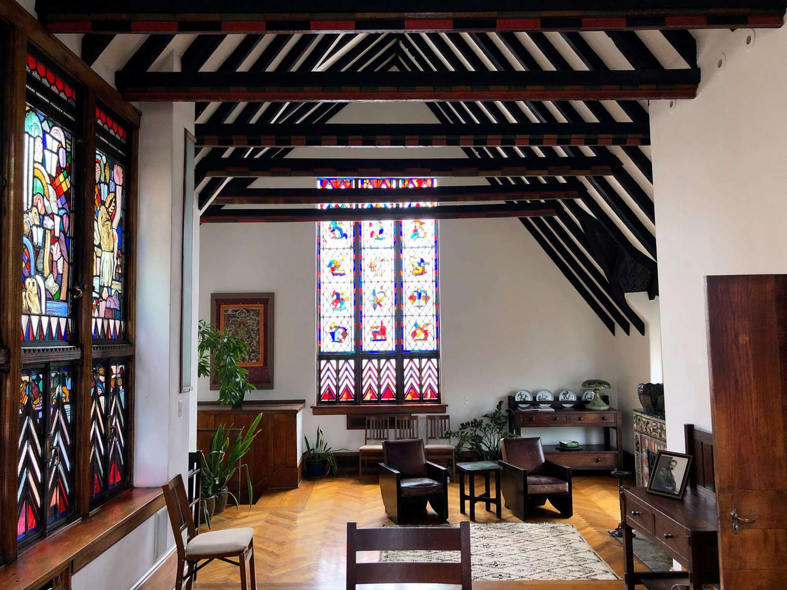 The Kogen-Miller Studios feature nine units arranged around an internal courtyard. One, the Glasner Studio (restored in late-1920s period-appropriate detail and the main focus of EML’s past programming), is owned by Zac Bleicher, executive director of Edgar Miller Legacy, and his mother, Julie Bleicher. Julie inherited the unit from her brother, Mark Mamolen, who was a close friend of Edgar Miller. Two units are owned by Ronald Cieslak (who declined to comment for this story), and six units are owned by Glenn Aldinger.