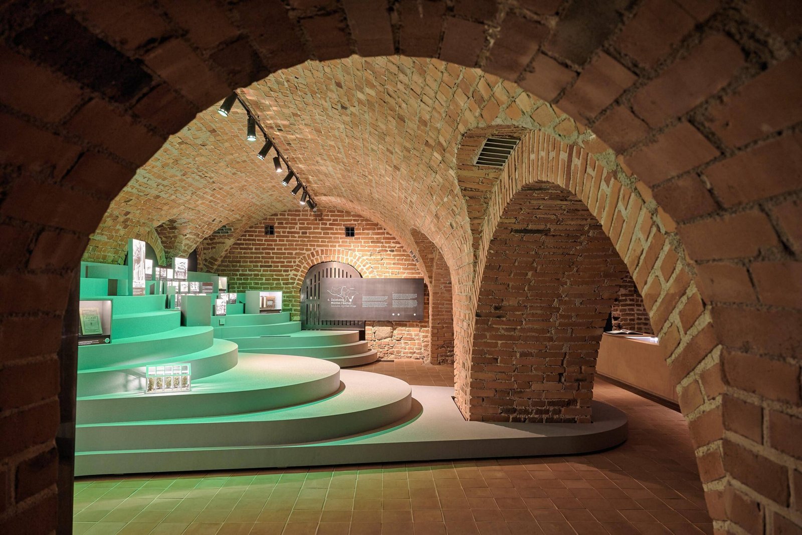 Vaulted basements were cleaned and conserved. The unused attic now holds a suspended glass-and-steel pavilion, set within the timber roof frame. A sculptural copper staircase links the levels and signals the present moment. Original masonry, clay tiles and wood surfaces remain exposed. The result supports exhibitions, events and daily visitors without diluting the building’s past.