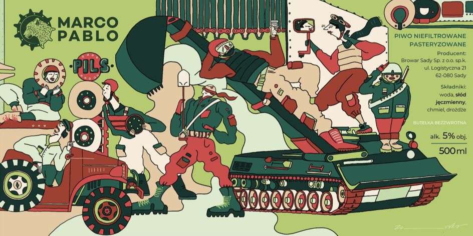 Perhaps it’s her style, but Zosia seems to attract some truly unusual clients. After graduating, her first commission as a freelancer was Marco Pablo, a Polish company that rebuilds and restores military vehicles and artillery, such as Panzer tanks and Howitzers. Toys for boys. The company wanted Zosia to create military-themed beer labels to adorn its promotional brew.
