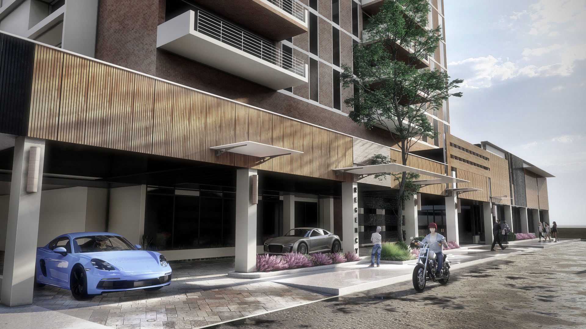 We understand that the existing canopy is both an element of shelter and salient in accentuating the character of the existing edifice. Since the existing function of the Regency’s Porte Cochere is to provide covered entrance for inhabitants and visitors, our design proposal reinterprets this element as a figuratively organic ext4ntion of the boardwalk.