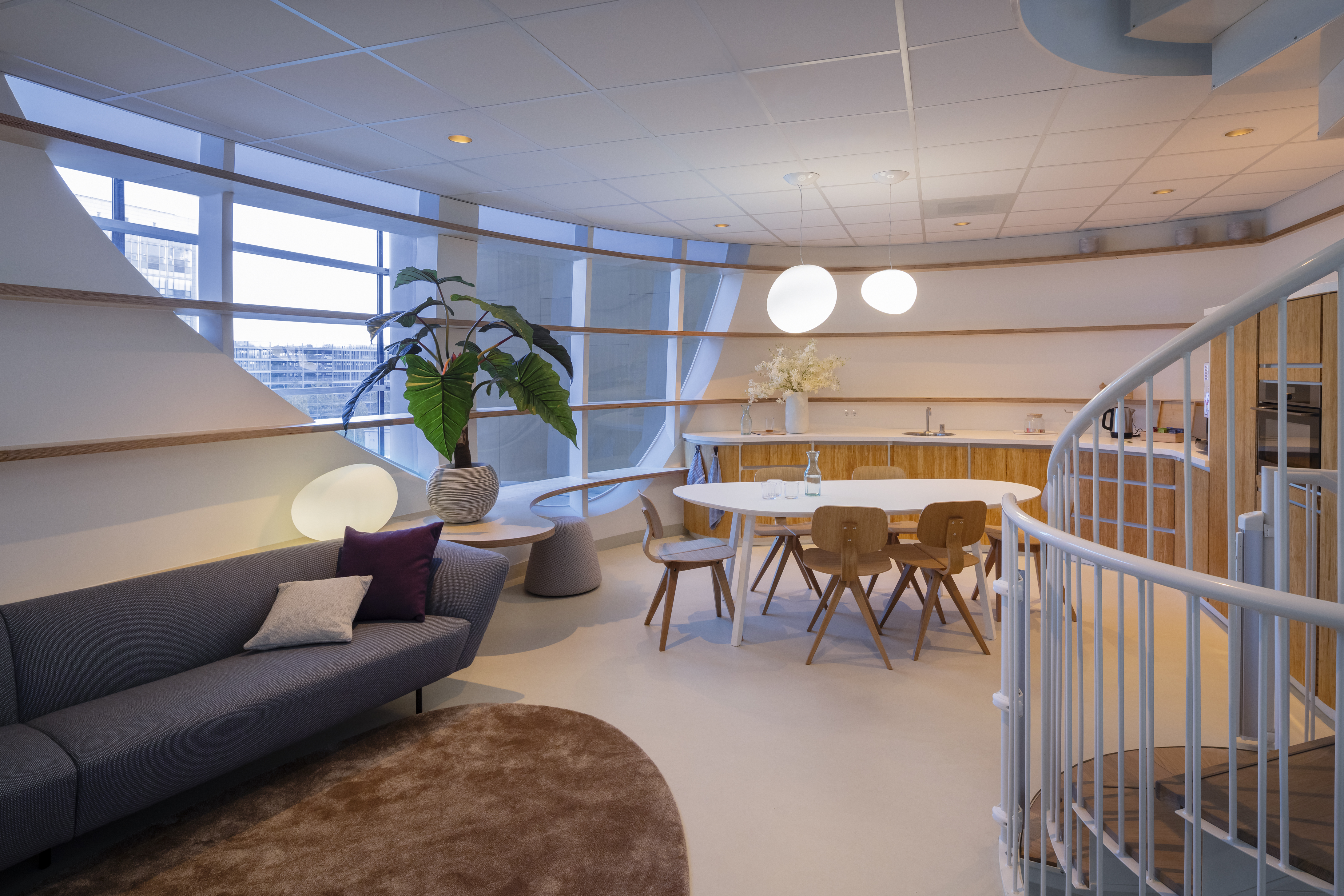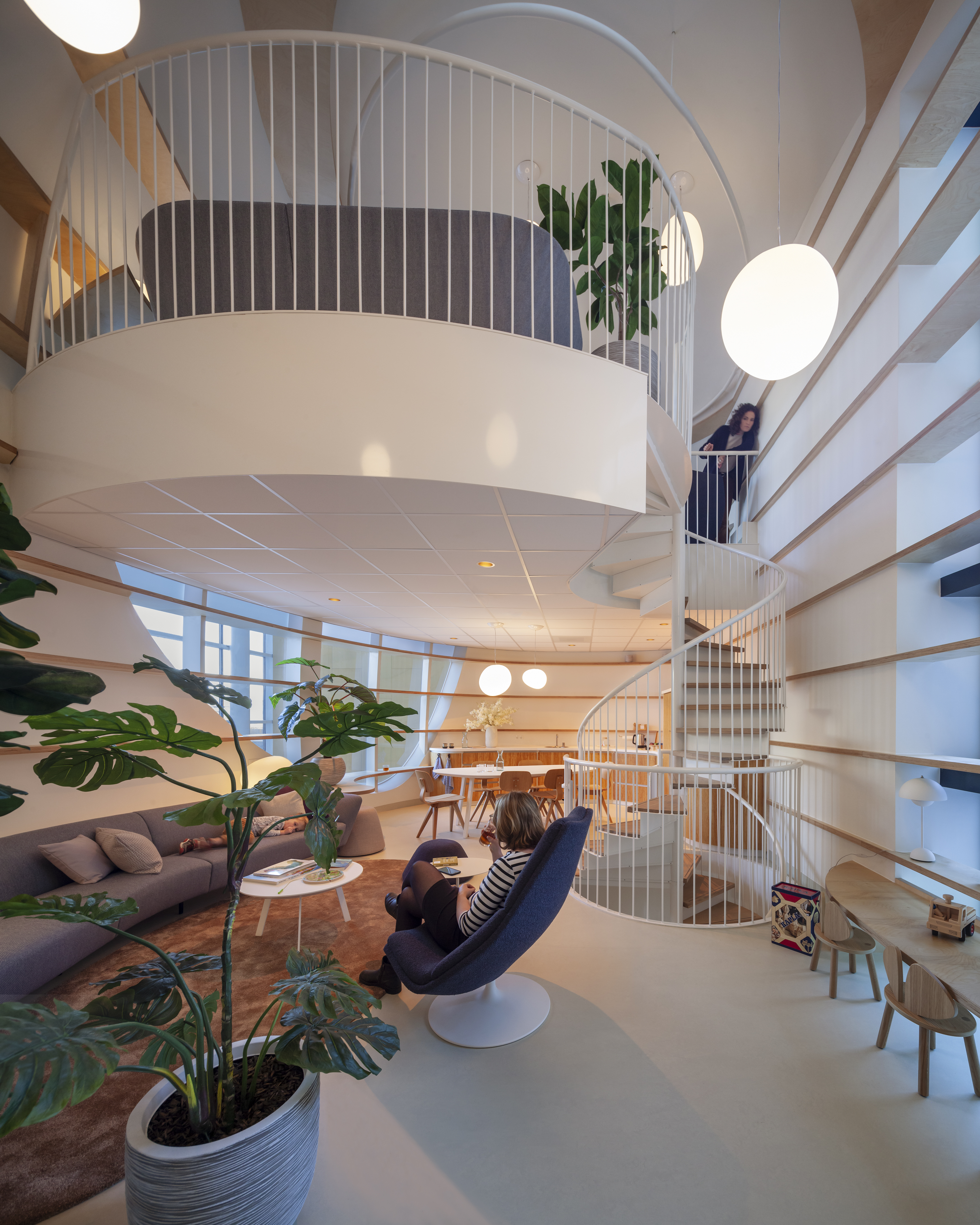 Nienke Plass-Verhagen, business director of Radboudumc Amalia Children’s Hospital: “The focus of the redesign is to create a setting that has a positive effect on patient recovery, a so-called healing environment. This new Family Room at Amalia Children’s Hospital offers a welcoming, domestic atmosphere for young patients and their families inside a medical facility.”Three floating floorsThe shape and design of the new Family Room arouses a sense of wonder and offers a pleasant distraction.