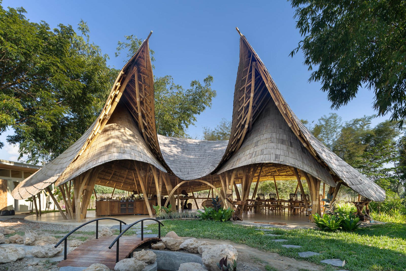 Chiangmai Life Architects designed the Bull pavilion using bamboo sourced within 62 miles (100 kilometers) of the site. Thanks to its rapid growth rate and high metabolism, bamboo absorbs large amounts of carbon dioxide during photosynthesis, acting as a natural carbon sink. By combining locally sourced wood with low-tech construction methods, the architects created a structure that actively reduces its environmental footprint.