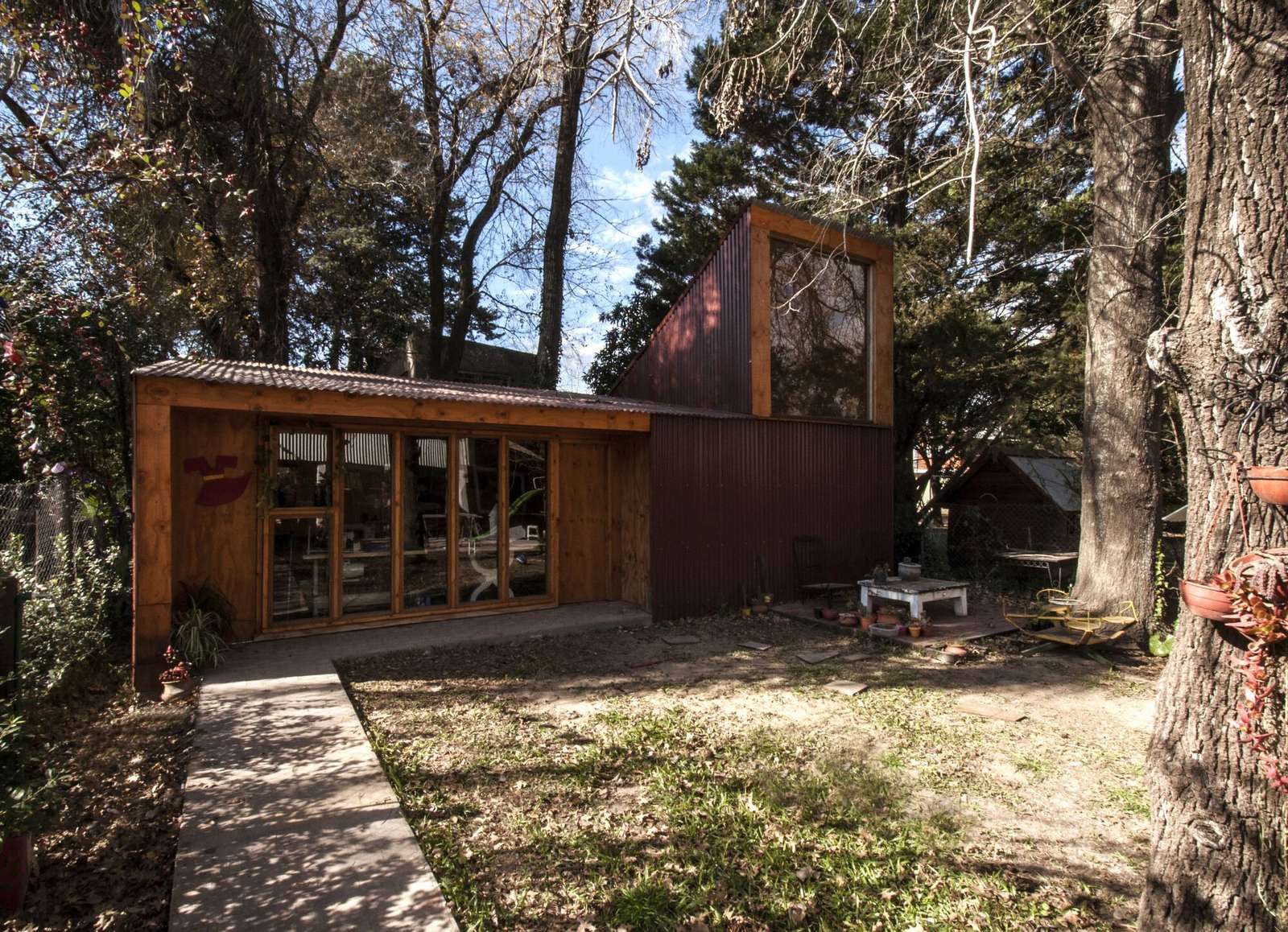 The need to solve the construction in a limited time, minimizing its impact, due to its location in the back part of a plot belonging to an inhabited house, was a reason for the choice of technology used. The prefabricated pine wood frames were executed in the workshop, moving to the site for immediate assembly.