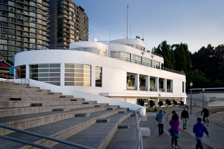 Located at the San Francisco Aquatic Park, the Maritime Museum is housed within a Streamline Moderne style bathhouse that was a joint effort by the City of San Francisco and the Works Progress Administration in 1939.