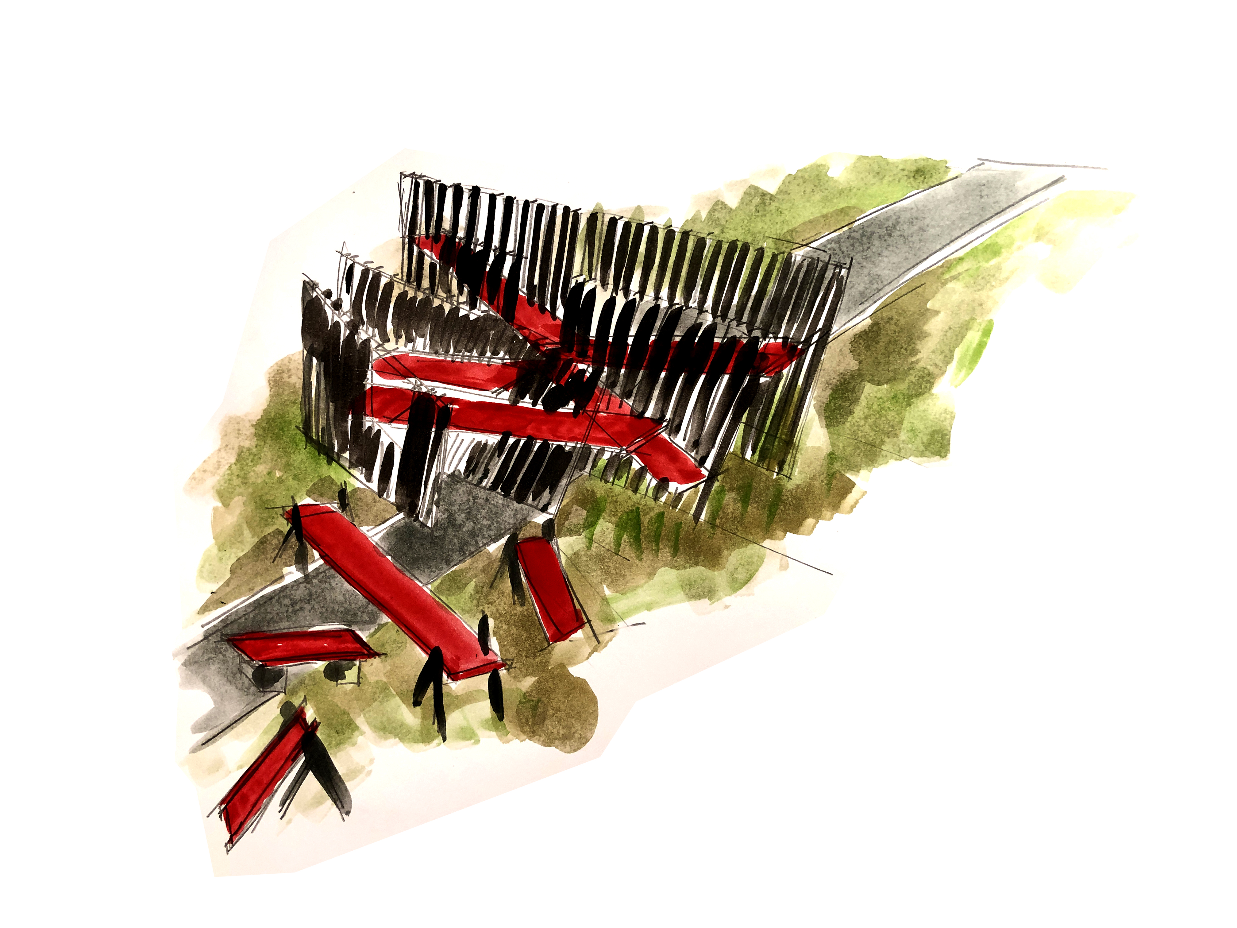 The installation is place in a radical location, cutting across the existing gravel path, thereby manifesting the phenomenon of separation. “We choose a confrontational tone. We cut across the path. We transform an obstacle into an impulse. An impulse for change,” states the author Matěj Hájek.