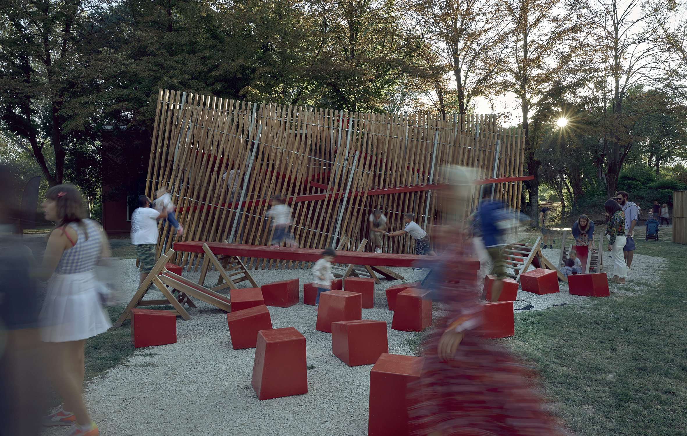 Studio: SKULL studio, MOLO architektiAuthor: Matěj Hájek [SKULL studio], Tereza Kučerová [MOLO architekti]For the first time invited sculptor Matěj Hájek and architect Tereza Kučerová were invited to the 17th International Architecture Exhibition – La Biennale di Venezia. In the section How will we play together?, in the freely accessible Forte Marghera fortress, they present the installation OFF FENCE.