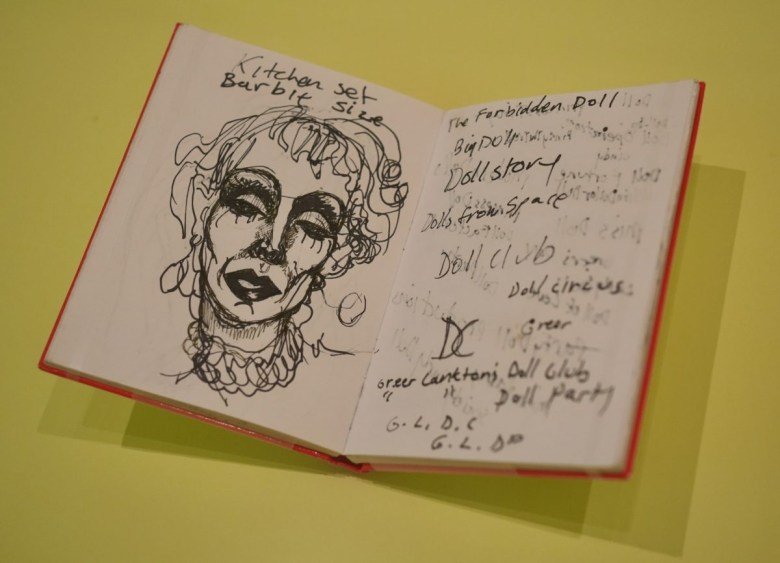 Greer Lankton’s “Journal #16 Red Sketchbook” (c.1986–87) on display at Vital Signs at the Museum of Modern Art (photo Hrag Vartanian/Hyperallergic)