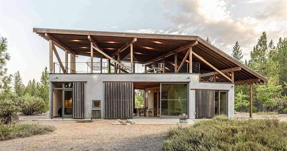With three bedrooms, bunks, nooks, roof room sleeping options, and a central day bed, the Mountain House offers flexible options for visits by family and guests. While the home is situated deep in the forests with no other structure or neighbor in sight, visitors can still access town in just fifteen minutes, lending a practical yet intimate connection to nature.